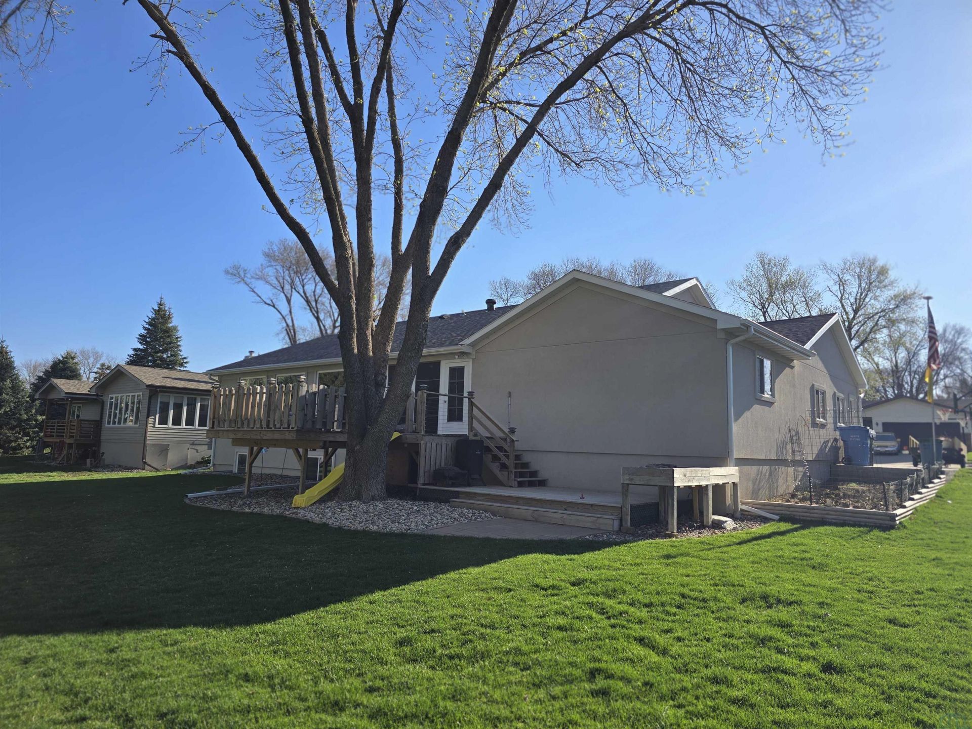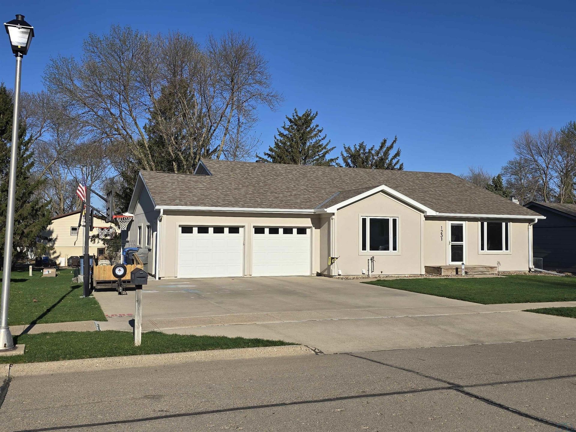 Ranch stucco renovated home in a perfect location. Nestled in the heart of Le Mars between schools, shopping and right off main roads for easy access to everything and yet sitting on a quiet side street and well~established neighborhood. This is a 100% completely remodeled 4~bedroom, 3 bath, open living home on both levels with an attached large and oversized double garage w/shop, heat and floor drains. This home features many items listed on any on check list. Quality construction with solid doors. Kitchen features include Quartersawn Oak cabinets, spacious pantry and Quartz countertops. There is a 3 season sunroom to enjoy or an outside upper and lower deck for all those backyard parties that overlooks a very private backyard...